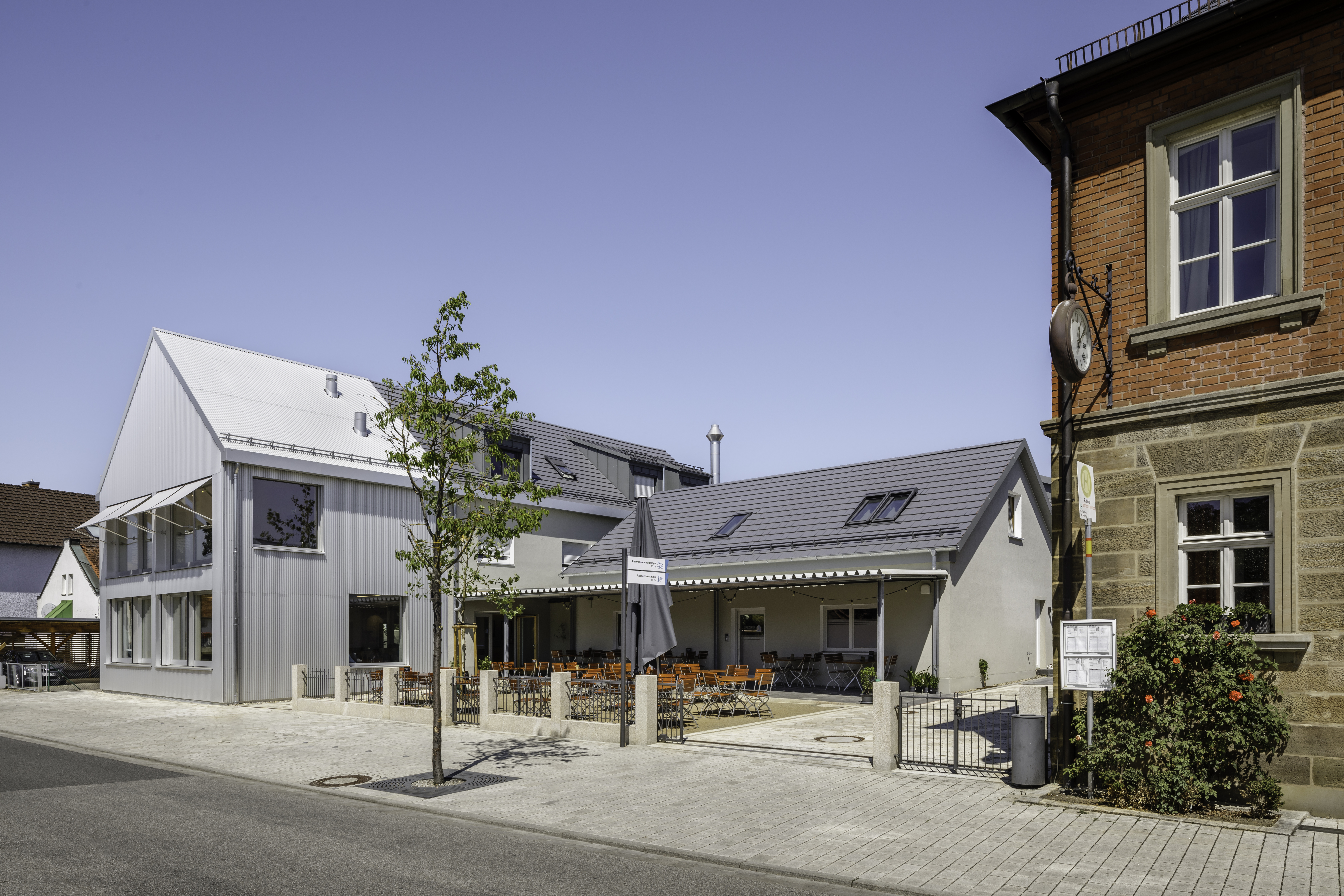 Die gut besuchte „Spezerei“ ist ein moderner, zweigeschossiger Giebelbau mit angrenzenden Gebäuden und attraktivem Biergarten am Leitenbach geworden.