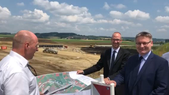 Landshut, 7. Juni 2018 (stmb). Auf Einladung des Staatlichen Bauamts Landshut und der Autobahndirektion Südbayern hat Verkehrsstaatssekretär Josef Zellmeier die Baustelle der B 15 neu besichtigt. Die gute Nachricht des Staatssekretärs: "Die seit September 2017 laufenden Erd- und Streckenbauarbeiten im neun Kilometer langen Neubauabschnitt zwischen Ergoldsbach und Essenbach liegen aufgrund der hervorragenden Arbeitsleistung der ausführenden Firma im Zeitplan. Der Abschnitt kann voraussichtlich Ende 2019 für den Verkehr freigegeben werden."