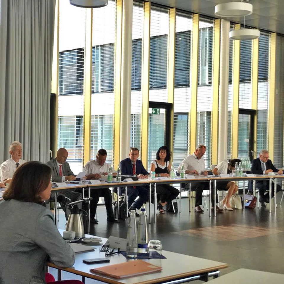 München, 26. Juli 2018 (stmb). "Wohnraum schaffen, das ist eine gesellschaftspolitische Aufgabe, die uns alle angeht. Wir brauchen den Dialog, um mit vereinten Kräften mehr Wohnungen zu bauen zu können“, sagte Ilse Aigner heute beim Bayerischen Wohnungsgipfel in München. Die Bauministerin und stellvertretende Ministerpräsidentin hatte erstmalig zu solch großer Runde Kommunale Spitzenverbände, die Verbände der Wohnungs-, Immobilien- und Bauwirtschaft, Vertreter von Planern und Technikern, den Mieterbund, mehrere Grundbesitzerverbände, die Kirchen, die BayernLabo sowie die Versorgungskammer Bayern in das Bauministerium eingeladen. Mehr als 30 Teilnehmer waren ihrer Einladung gefolgt.
