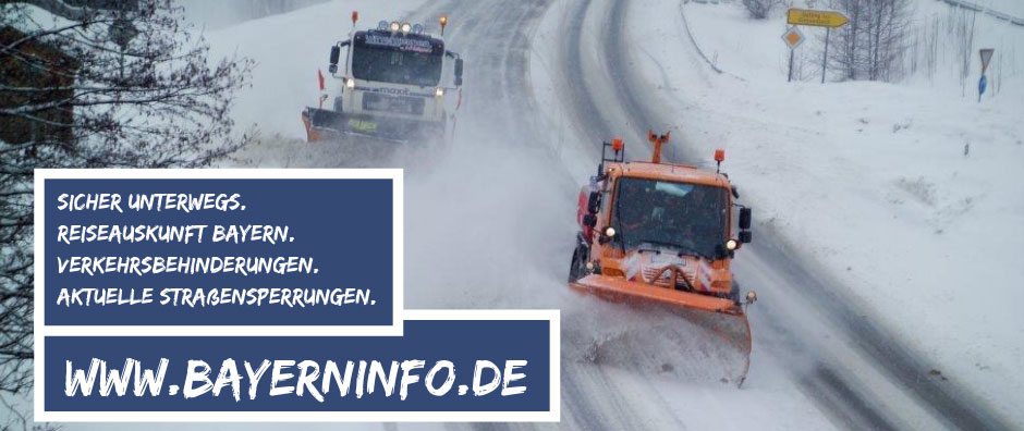 Wir möchten, dass Sie trotz der winterlichen Straßenverhältnisse gut und sicher ans Ziel kommen. Infos zur aktuellen Straßen- und Verkehrslage liefert unsere Reiseauskunft "BayernInfo".