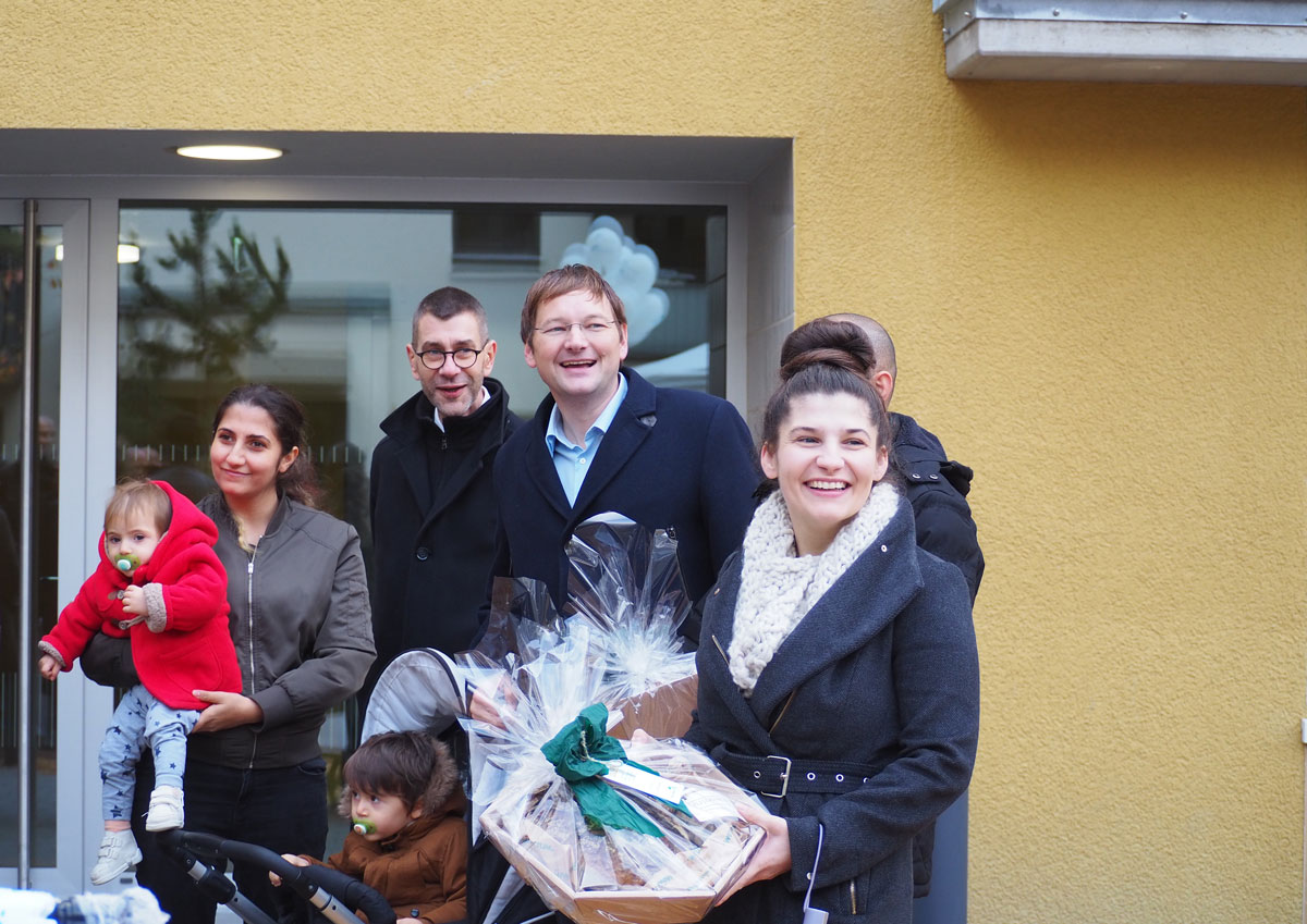 München, 6. November 2019 (stmb). Nur 16 Monate nach Gründung der BayernHeim GmbH sind die ersten Wohnungen bezugsfertig: Mit Brot und Salz im Gepäck kam Bayerns Bauminister Hans Reichhart heute persönlich vorbei, um die ersten Mieterinnen und Mieter der BayernHeim GmbH in ihren neuen vier Wänden zu begrüßen.