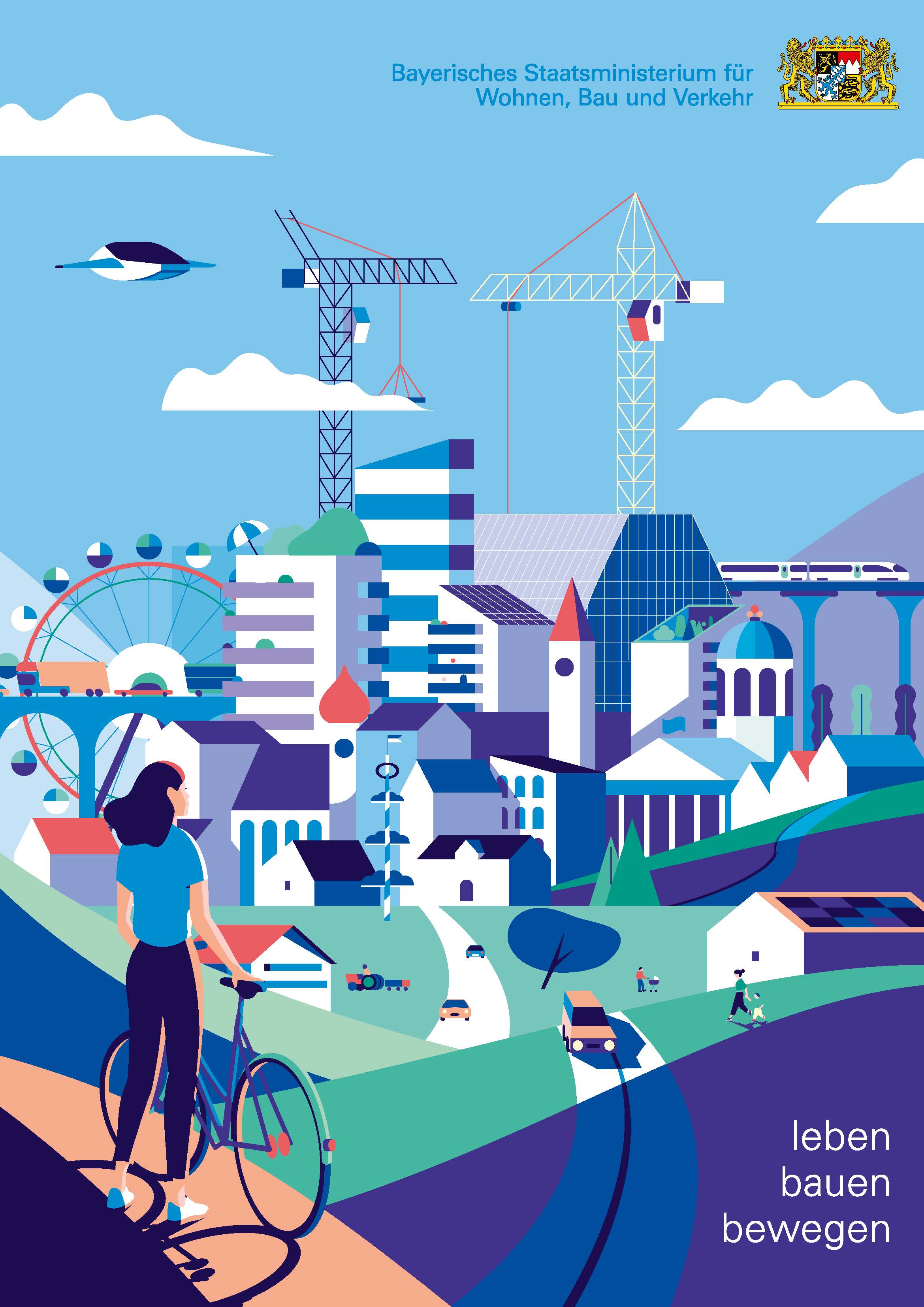 Mit dem neuen Faltplakat geben wir einen Einblick in das vielfältige und spannende Aufgabenfeld des Bau- und Verkehrsministeriums. Mit über 11.000 Mitarbeiterinnen und Mitarbeitern in der Staatsbauverwaltung und im Ministerium kümmern wir uns um die sozialen Fragen der Zukunft rund um die Themen Wohnen, Bau und Verkehr.