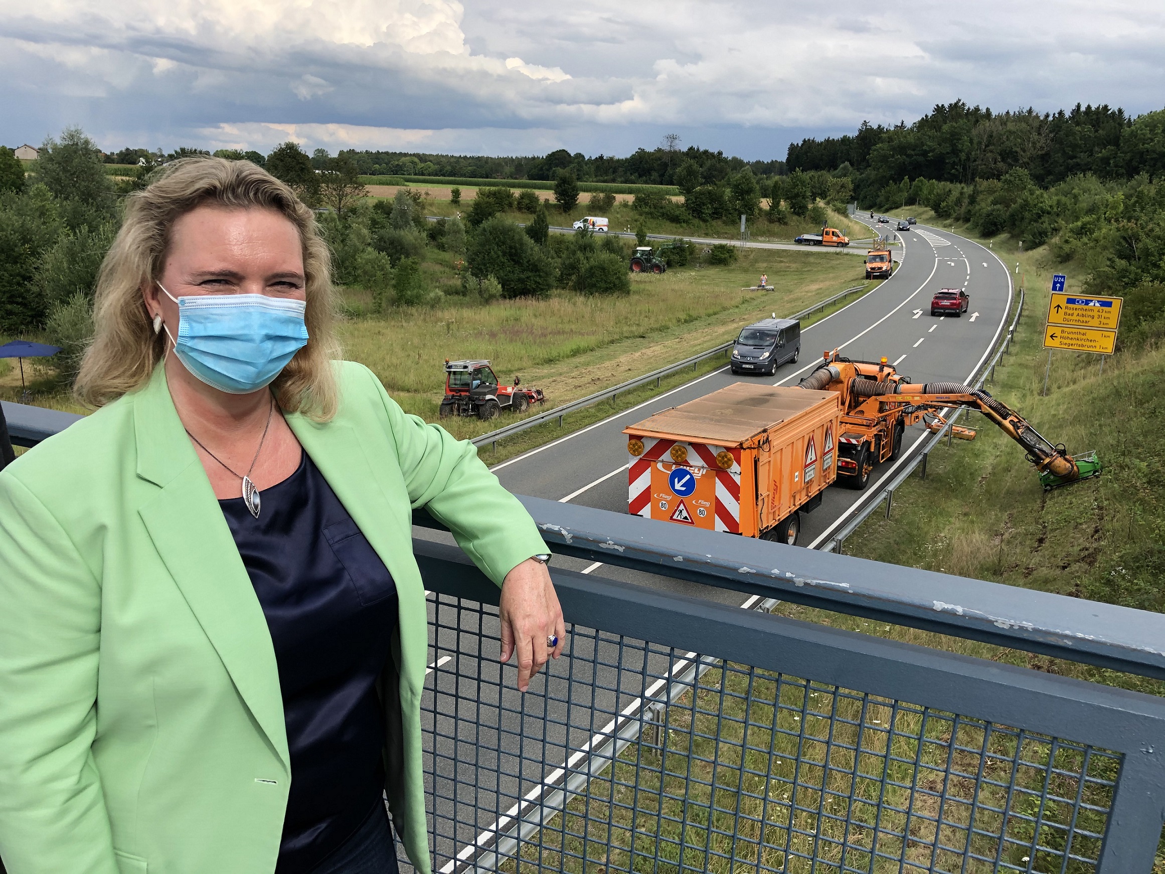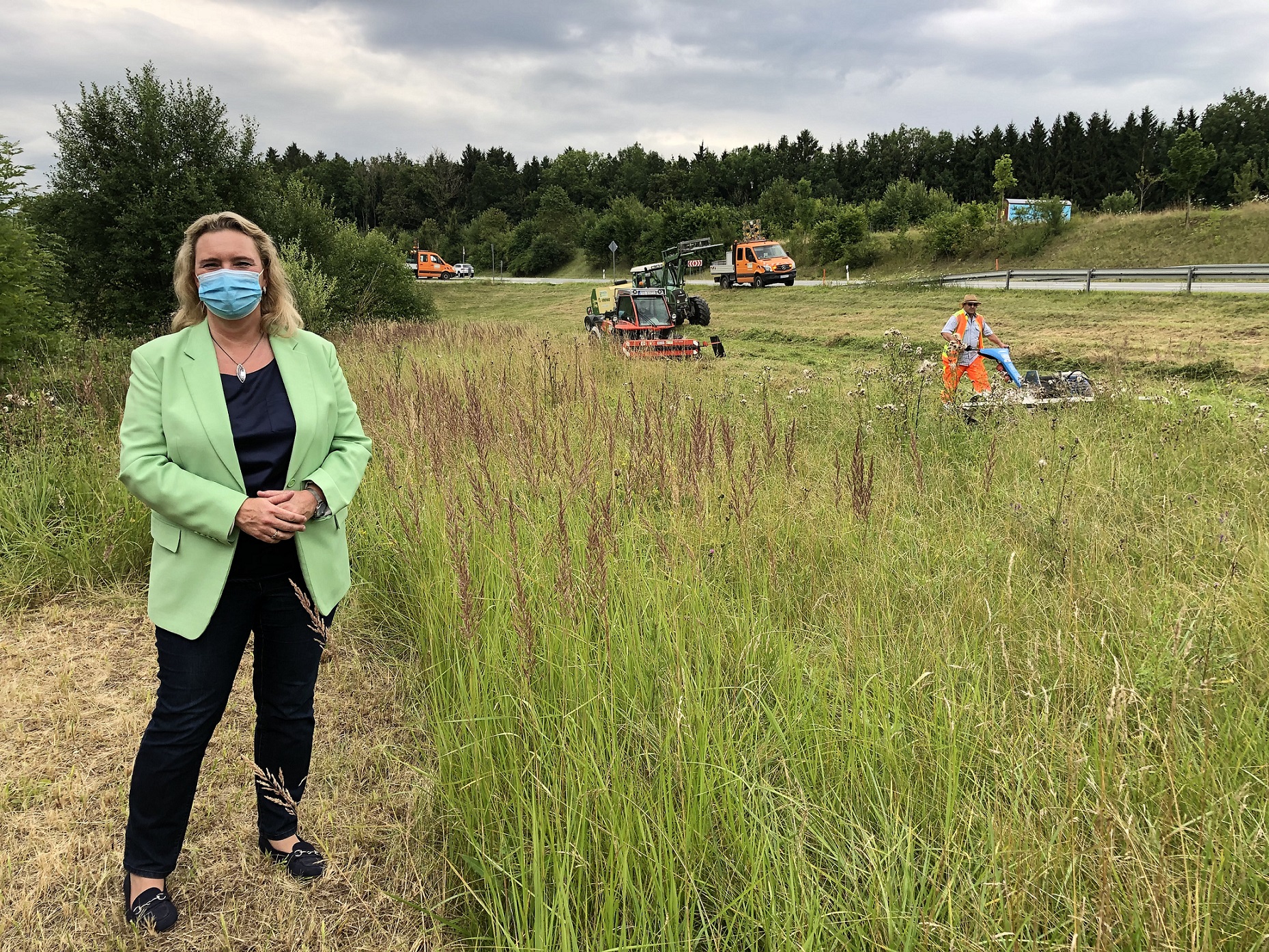 München, 03.08.2021Bayerns Verkehrsministerin Kerstin Schreyer: "Wir machen Straßenböschungen zu Highways für Bienen, Schmetterlinge & Co."