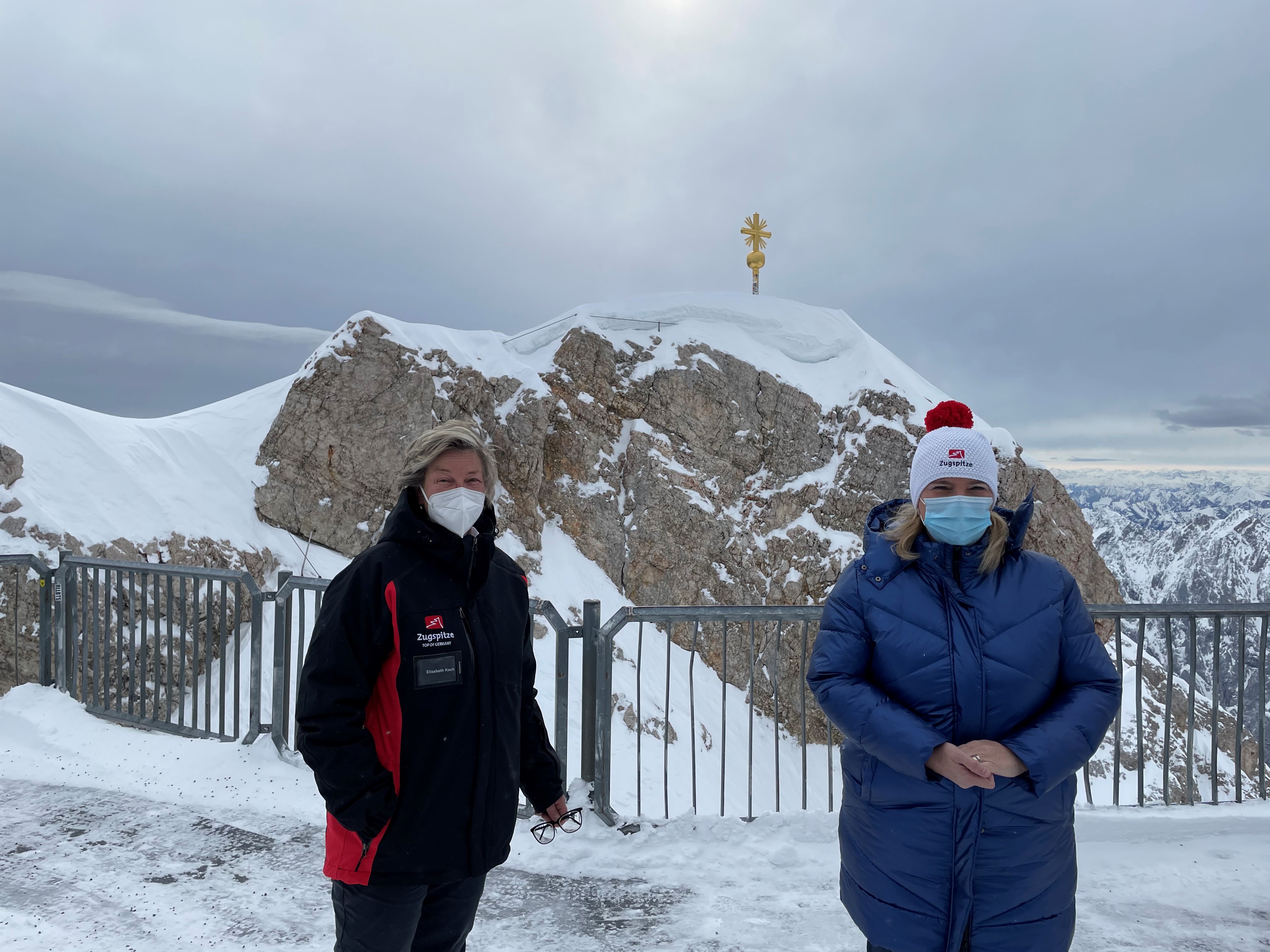 Bürgermeisterin Elisabeth Koch und Verkehrsministerin Kerstin Schreyer auf dem nun wieder per Seilbahn erreichbaren Gipfel der Zugspitze